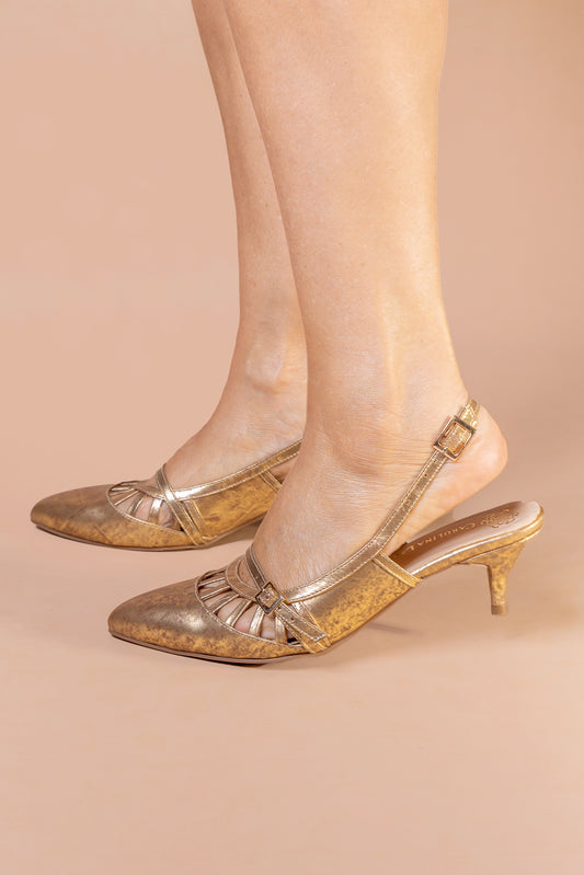 Stiletto Devi - Cuero Oro Envejecido -Tacón 3.5 cms - Carolina Laiton