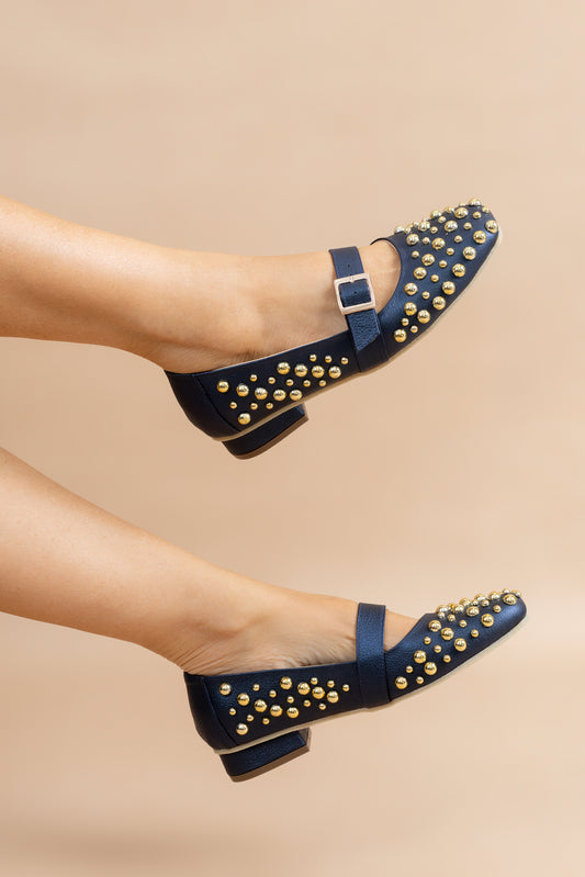 Baleta Luisa Cuero Azul - Carolina Laiton