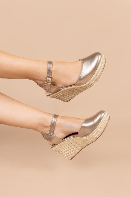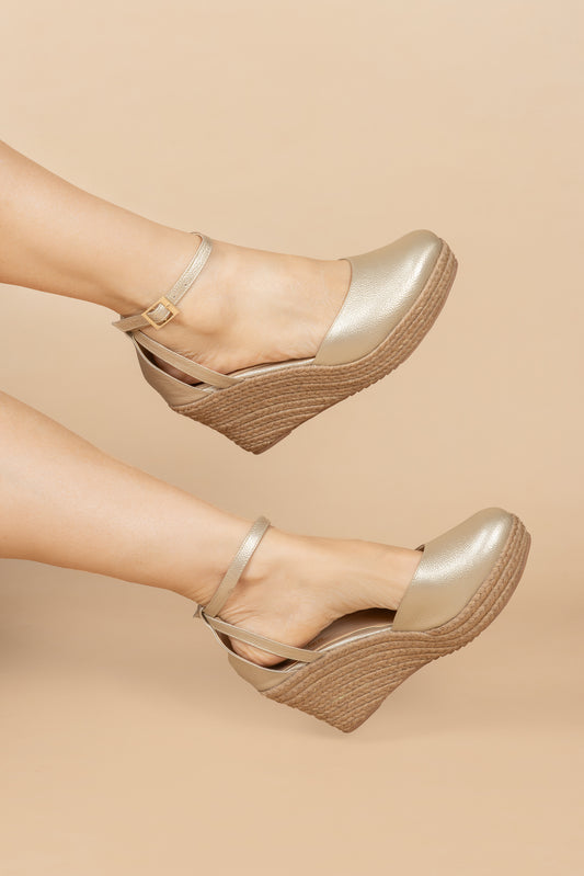 Sandalia Lexly Cuero Folia x Champaña - Tacón corrido 6.5 cms- Carolina Laiton