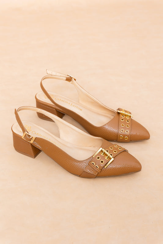 Stiletto Alessandra Cuero MIel - Tacon kitten heel 3.5 cms- Carolina Laiton