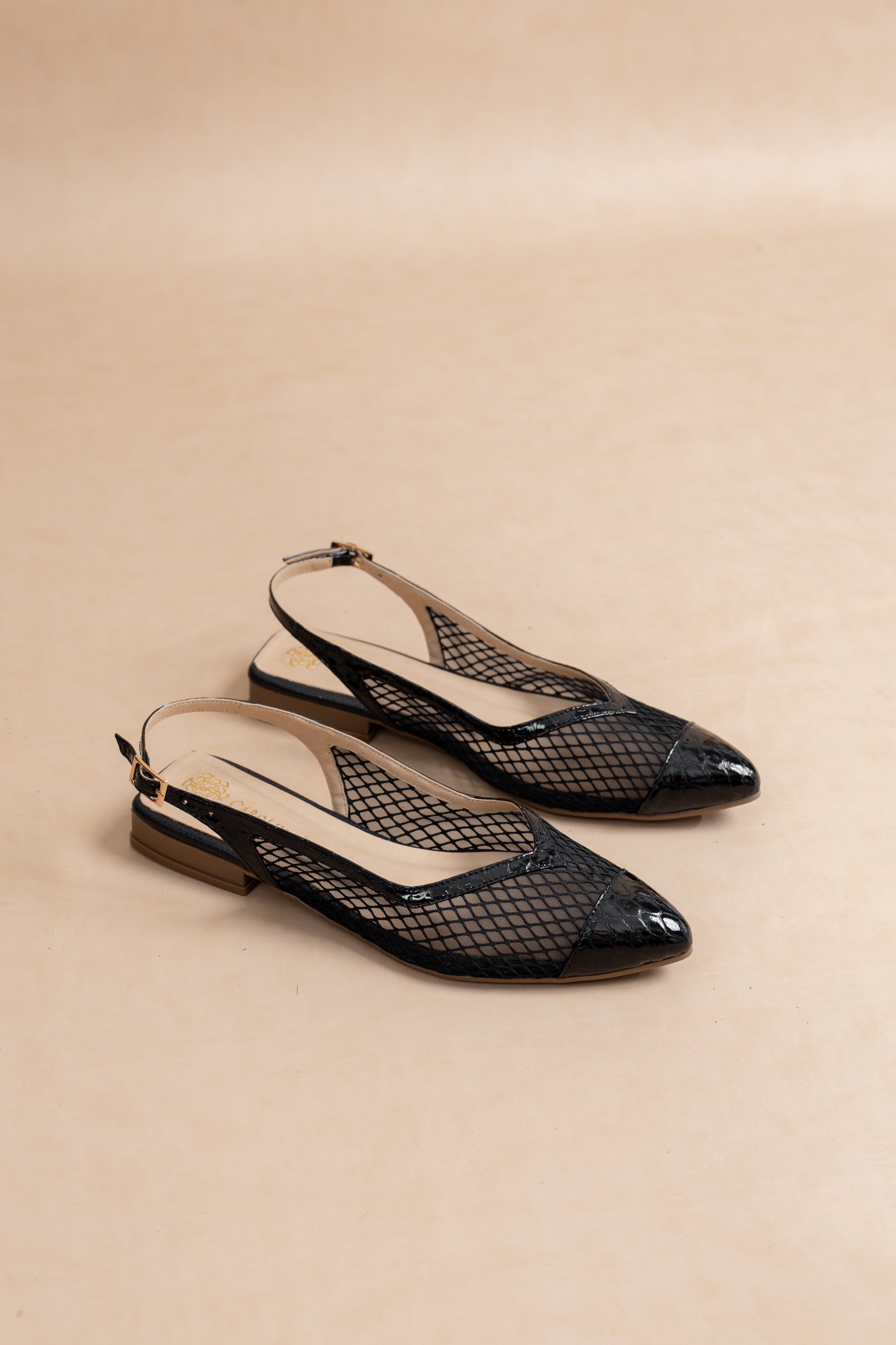 Baleta en Cuero Negro con Malla