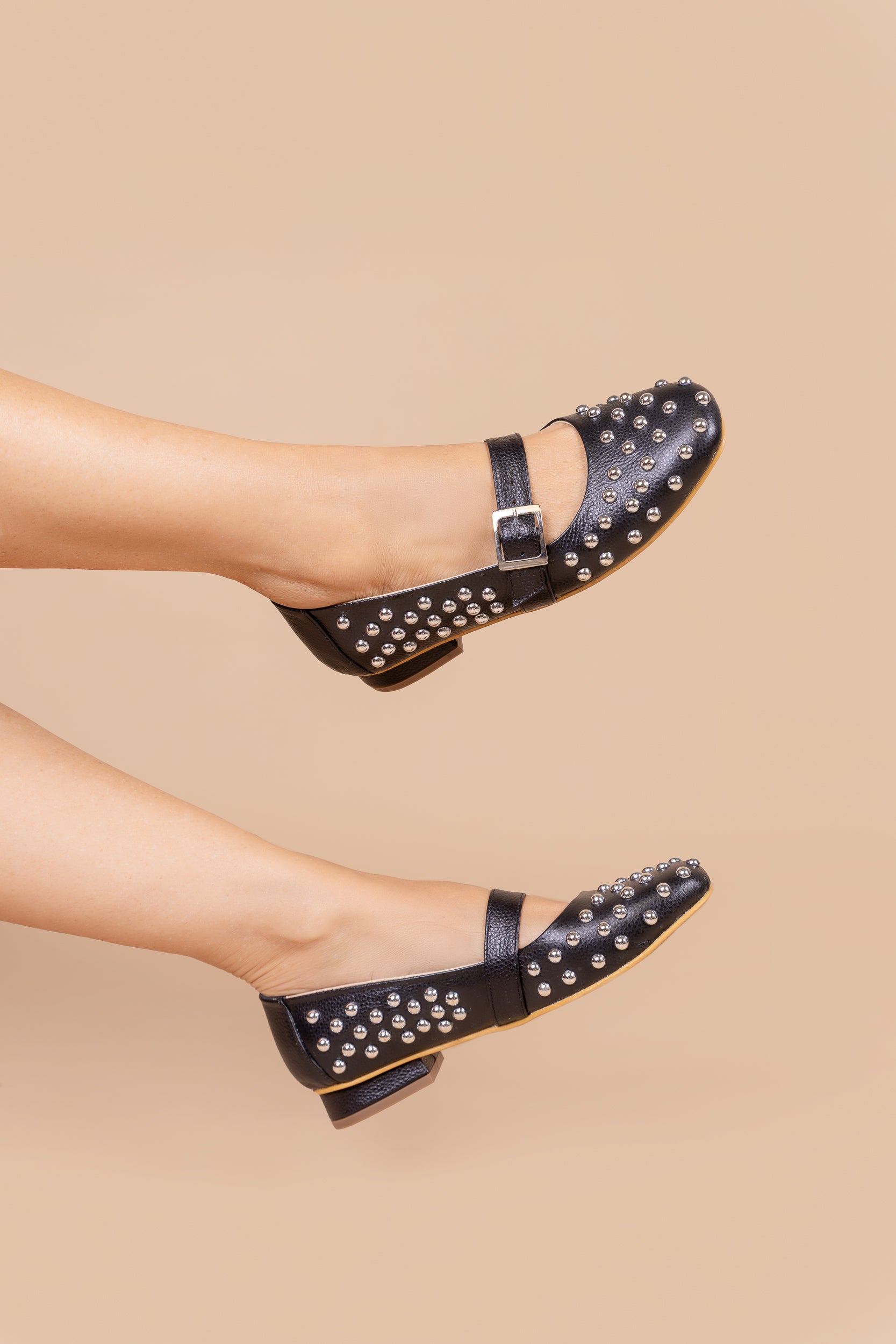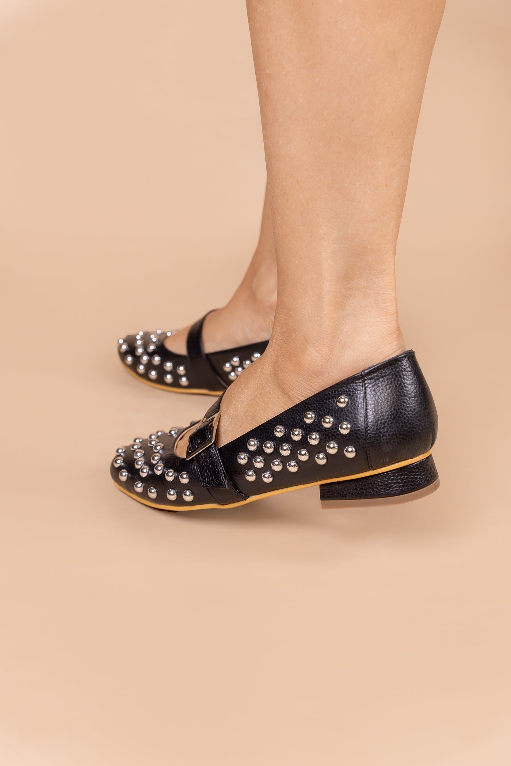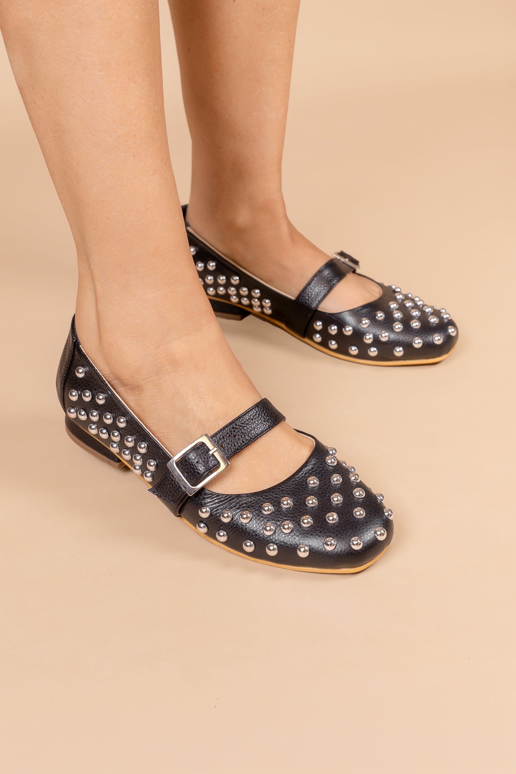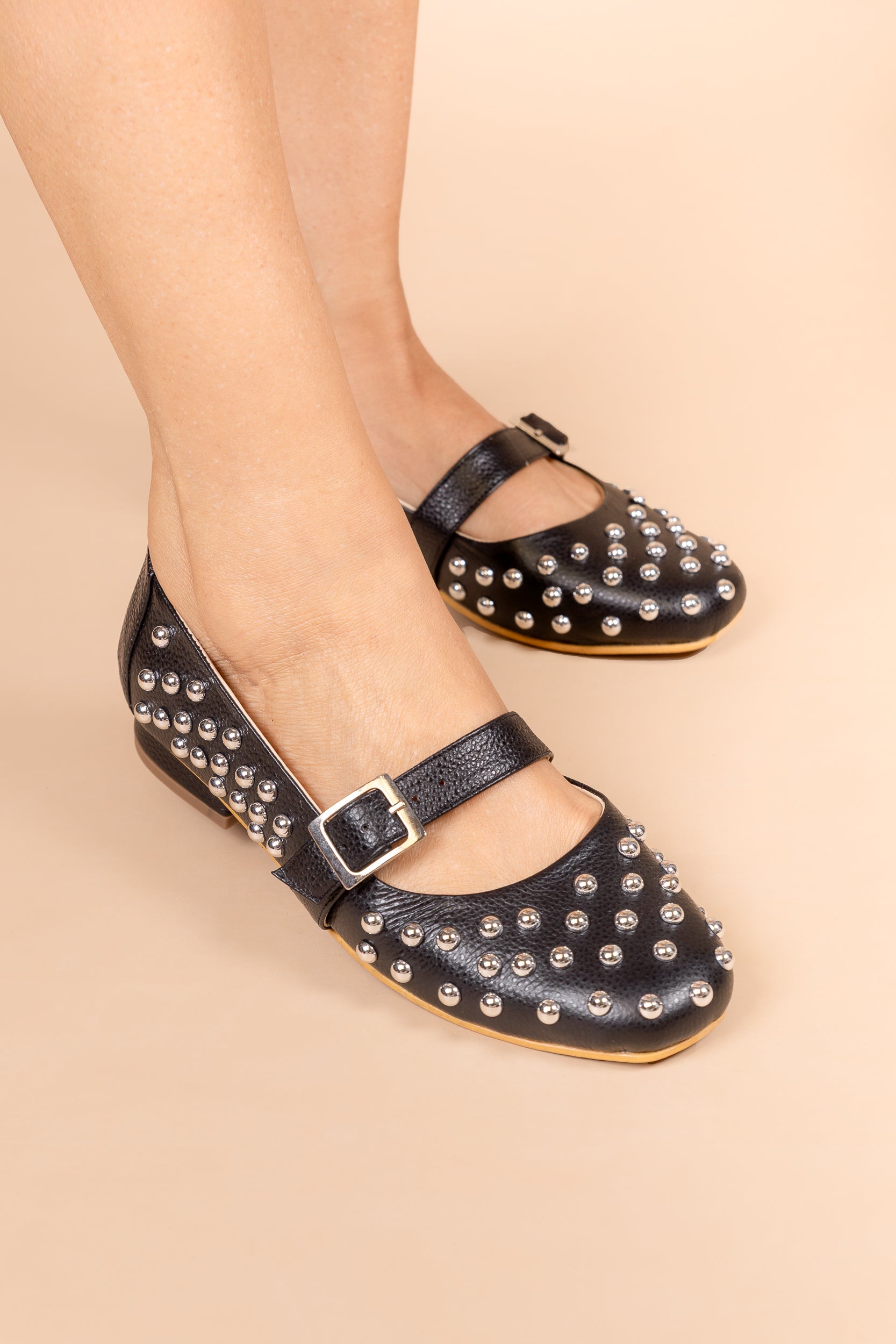 ¡El cuero negro con apliques dorados se reinventa en las Mary Jane para darte un estilo sofisticado, fuerte y lleno de actitud!