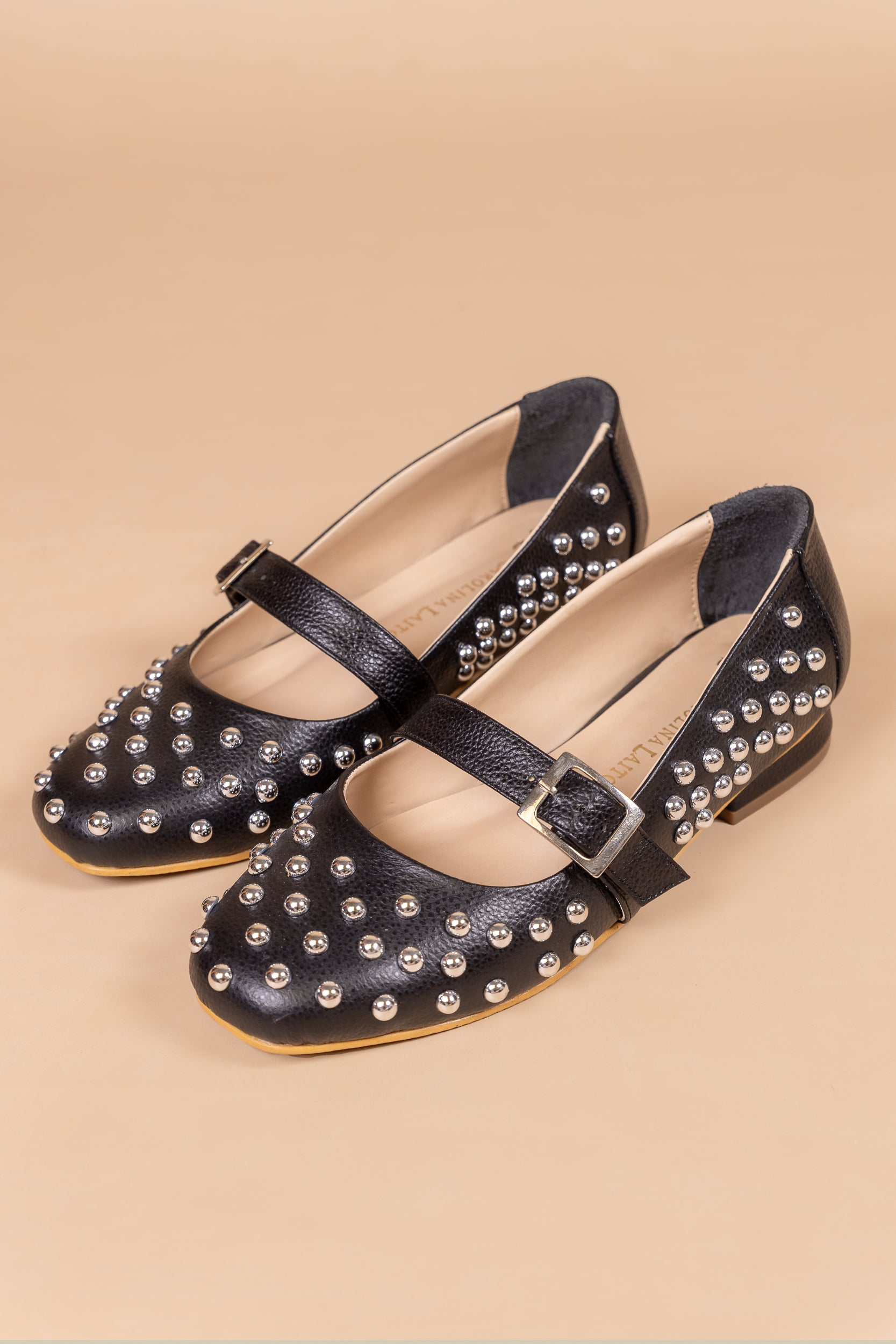 Las Baletas Nira en 100 % Cuero con apliques dorados son la fusión perfecta entre elegancia y carácter. Un diseño para mujeres que se atreven a destacar sin perder sofisticación.