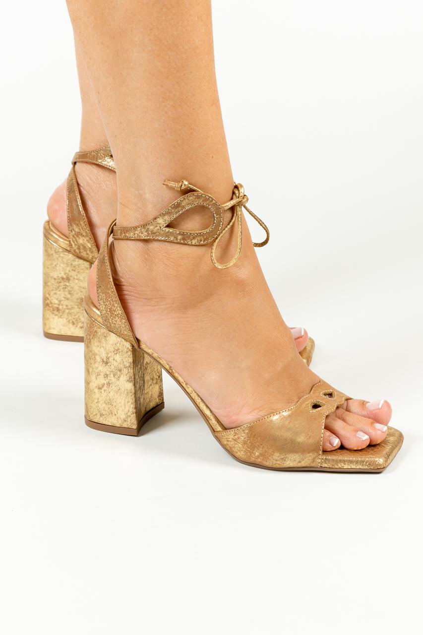 Sandalia Gold Cuero Folia Dorado- Tacón 7.5 cm- Carolina Laiton