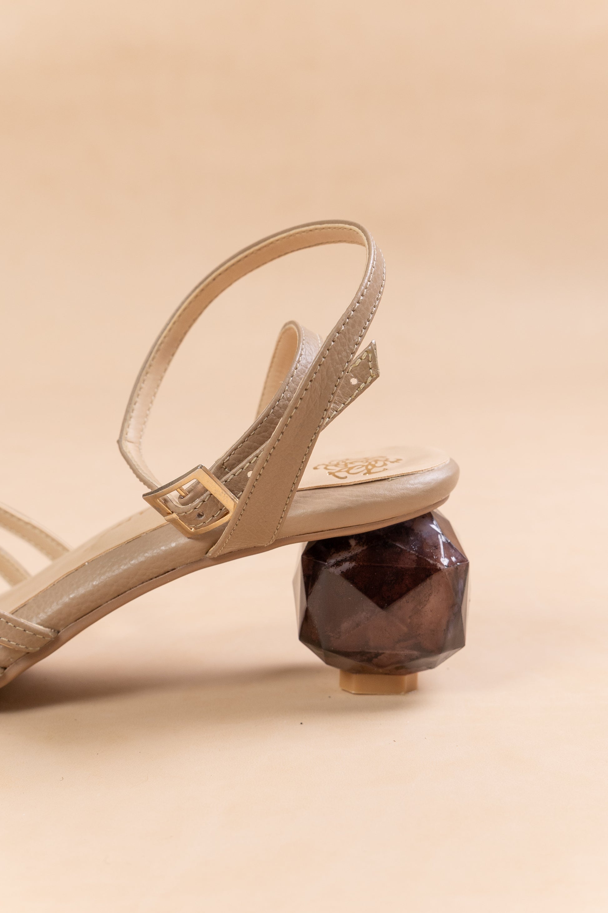 Sandalia Mary - Cuero Almendra- Tacon 5.5 cm - Carolina Laiton