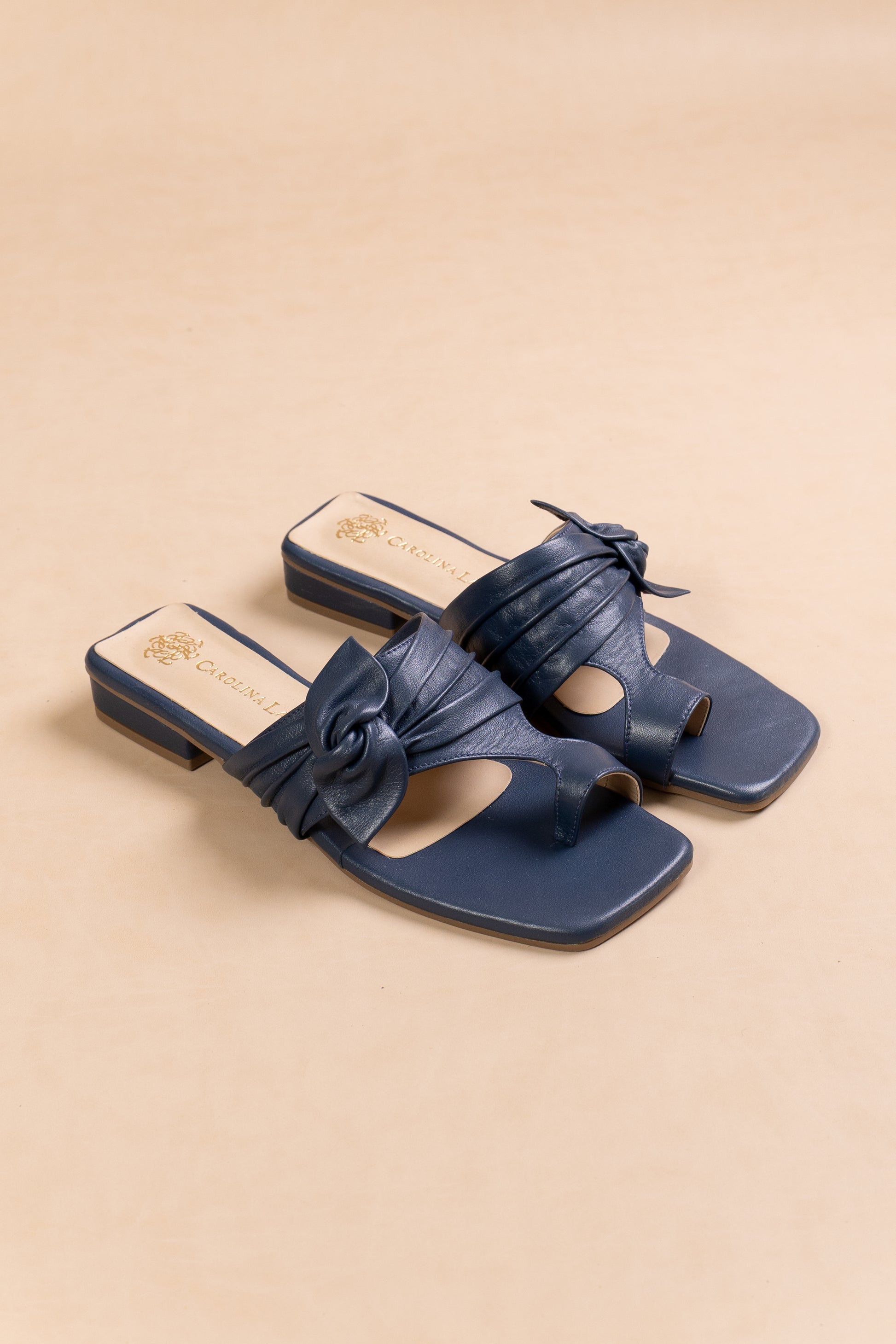 Sandalia Plana Afrodita - Cuero Azul - tacón 1.5 cm- Carolina Laiton