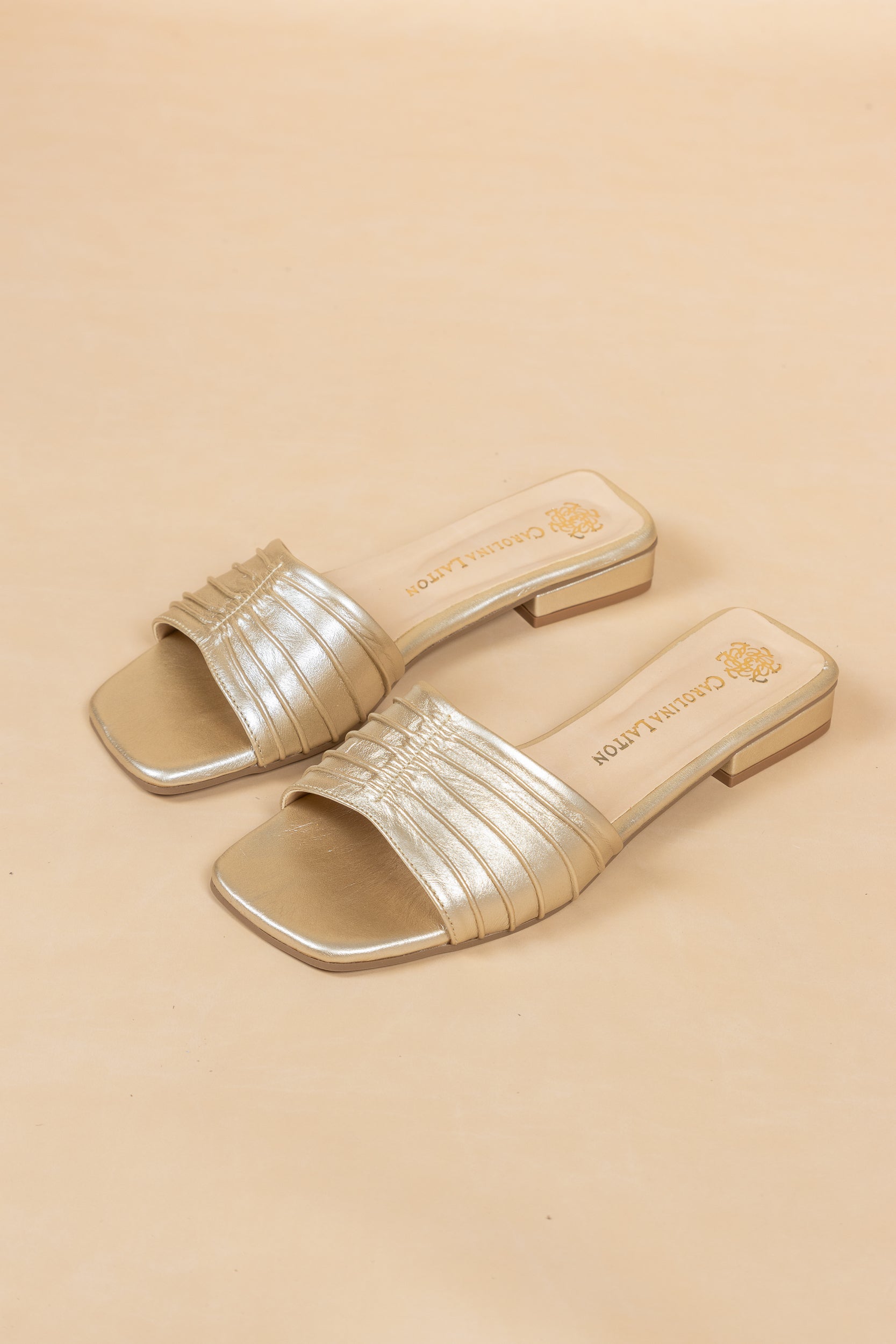 Sandalia Plana Elyn Cuero Oro rosa- tacón 1.5 cm- Carolina Laiton