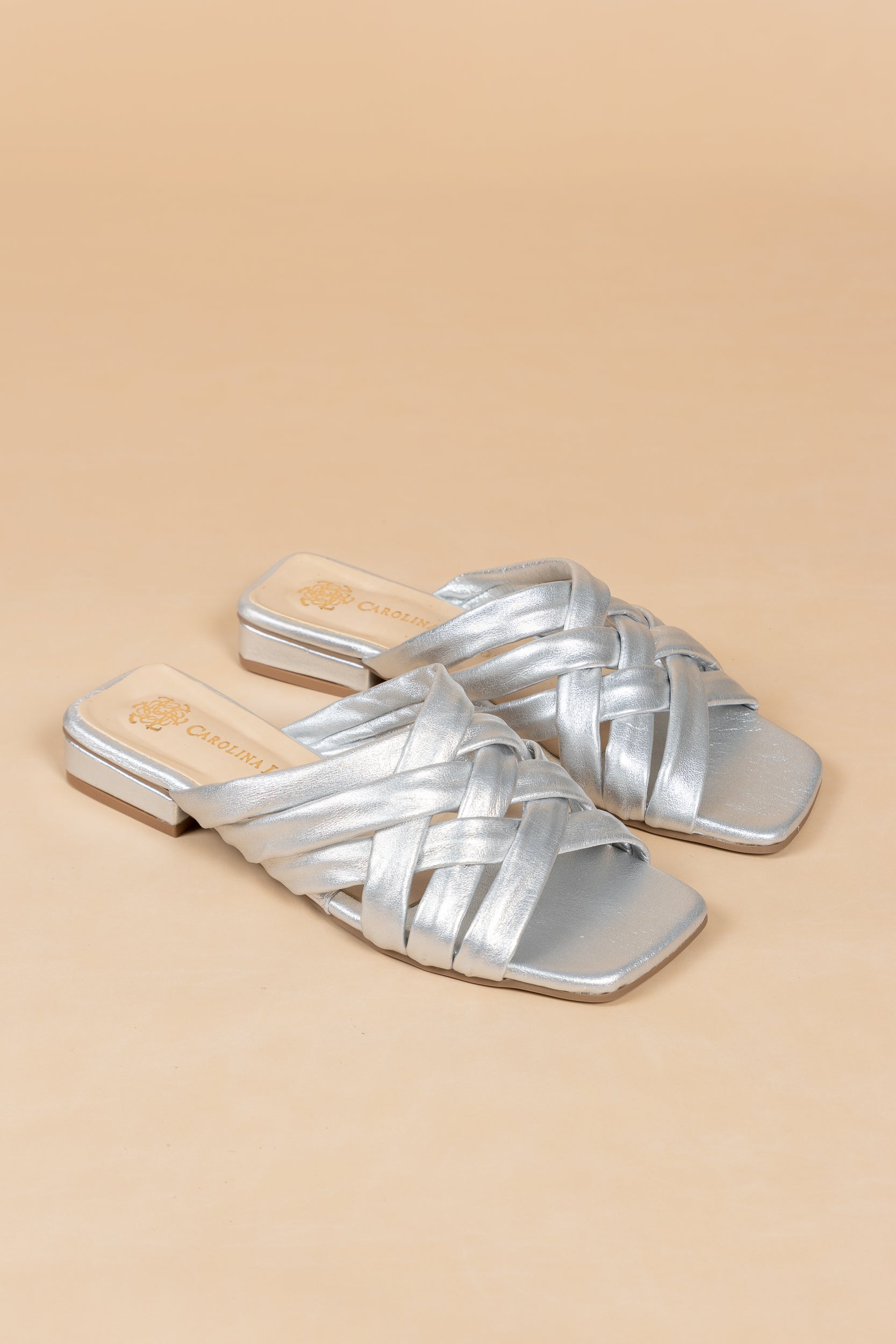 Sandalia Plana Zenda Cuero Plata- tacón 1.5 cm- Carolina Laiton