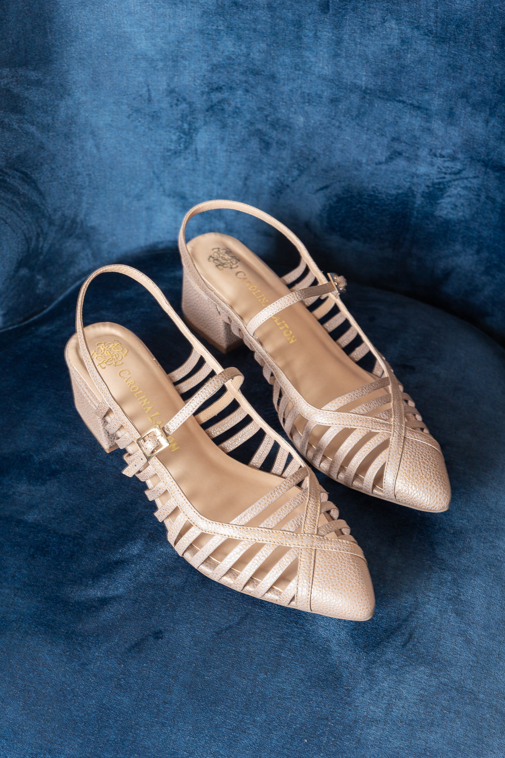 Stiletto Ada rejilla Cuero Colores Combinados - Tacon kitten heel 3.5 cms- Carolina Laiton