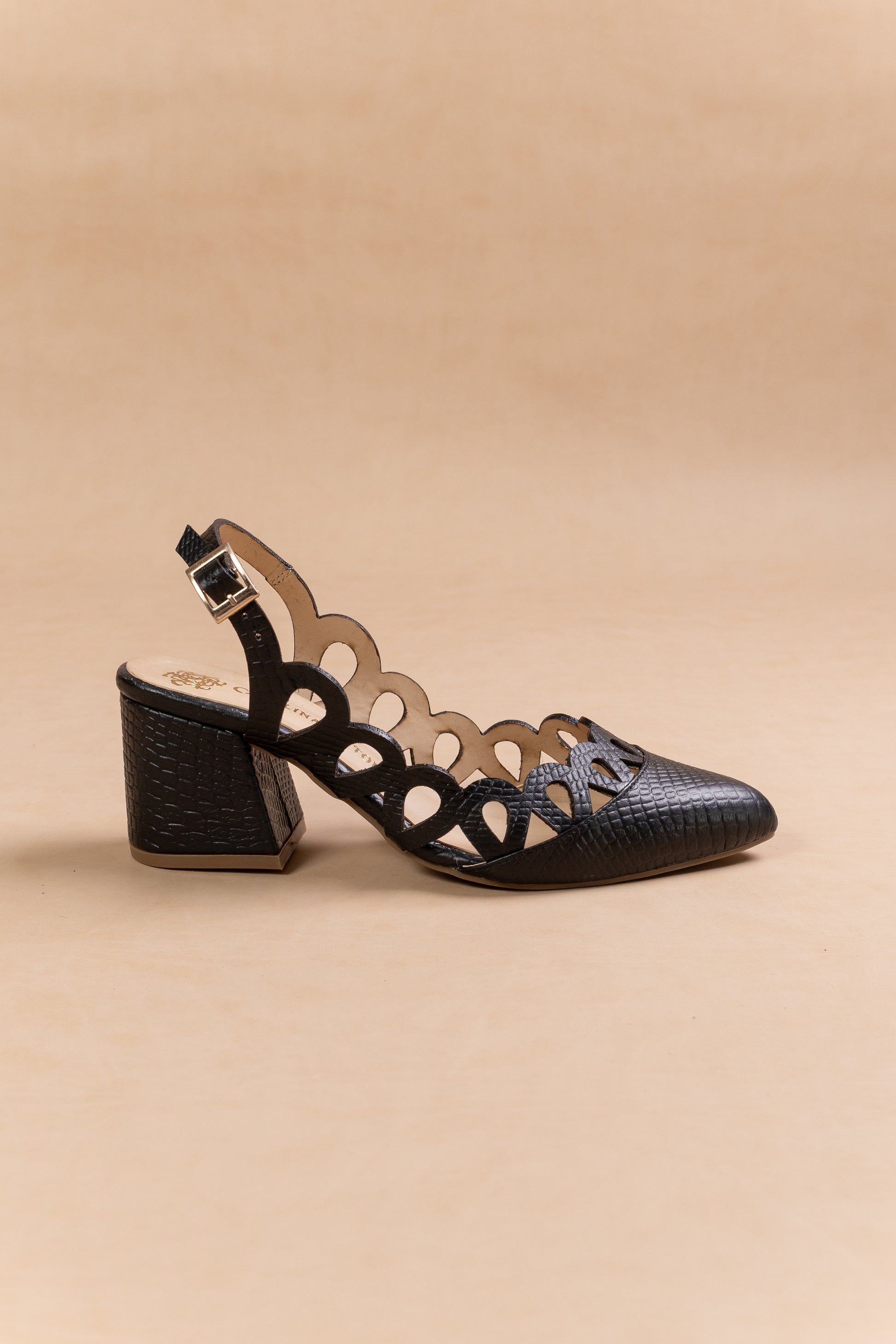Stiletto Sol Cuero Negro - Tacon kitten heel 5.5 cms- Carolina Laiton
