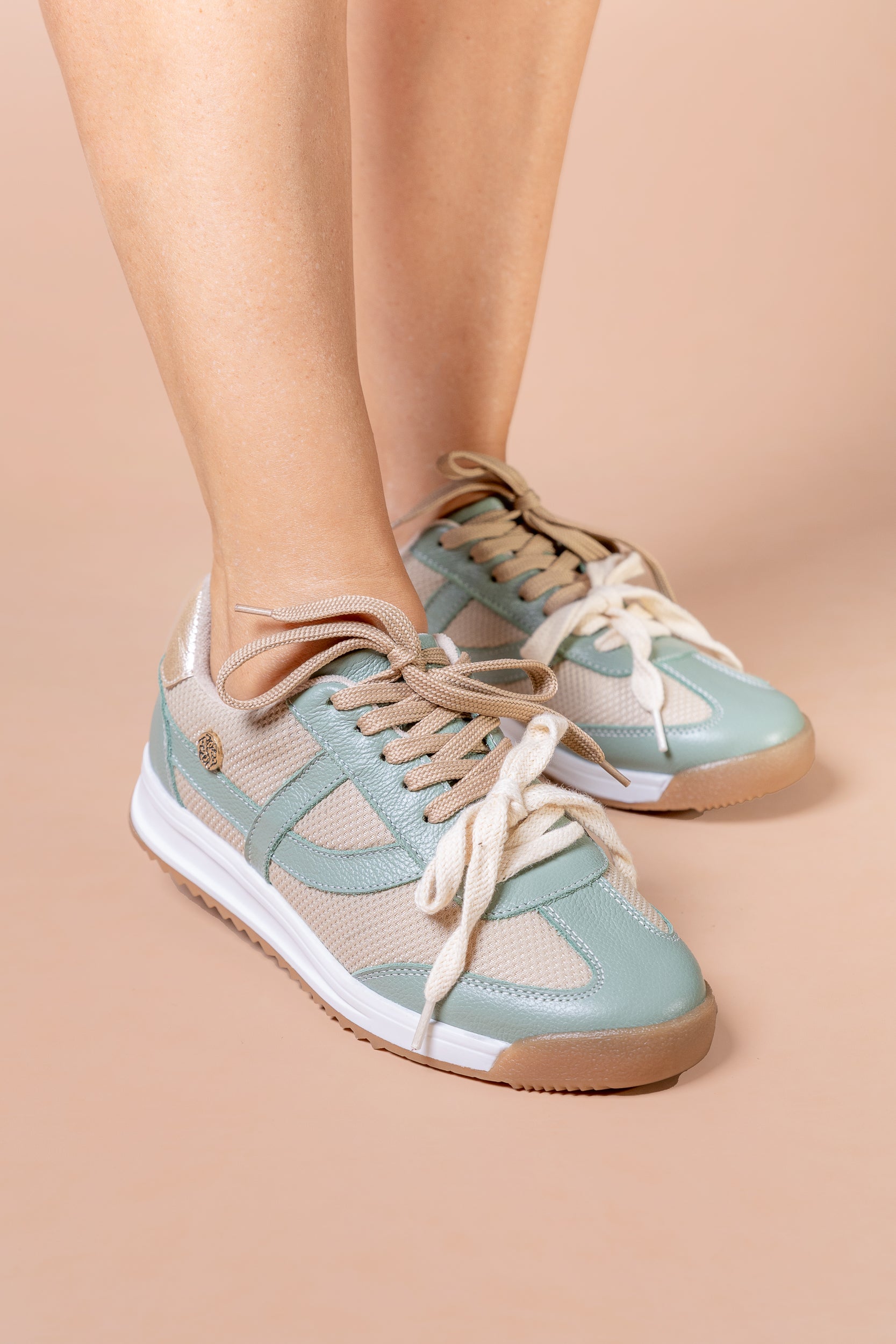 Tenis Aura Cuero Verde Pastel - Carolina Laiton
