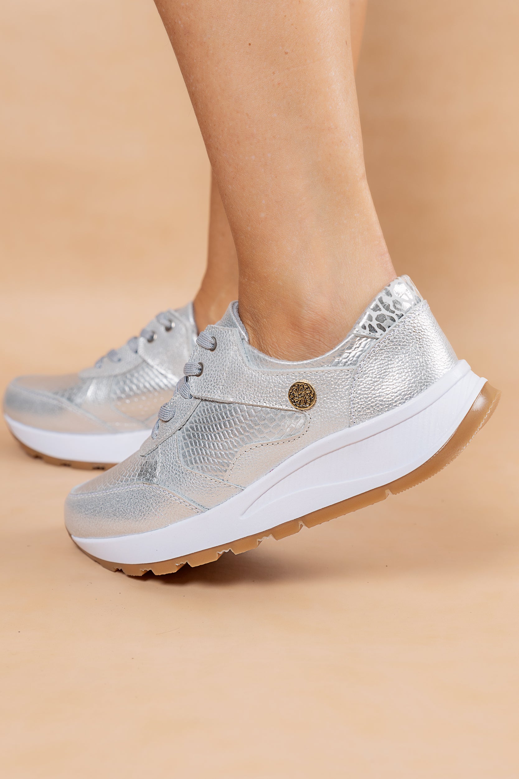 Tenis Amelia Cuero Plateado - Carolina Laiton