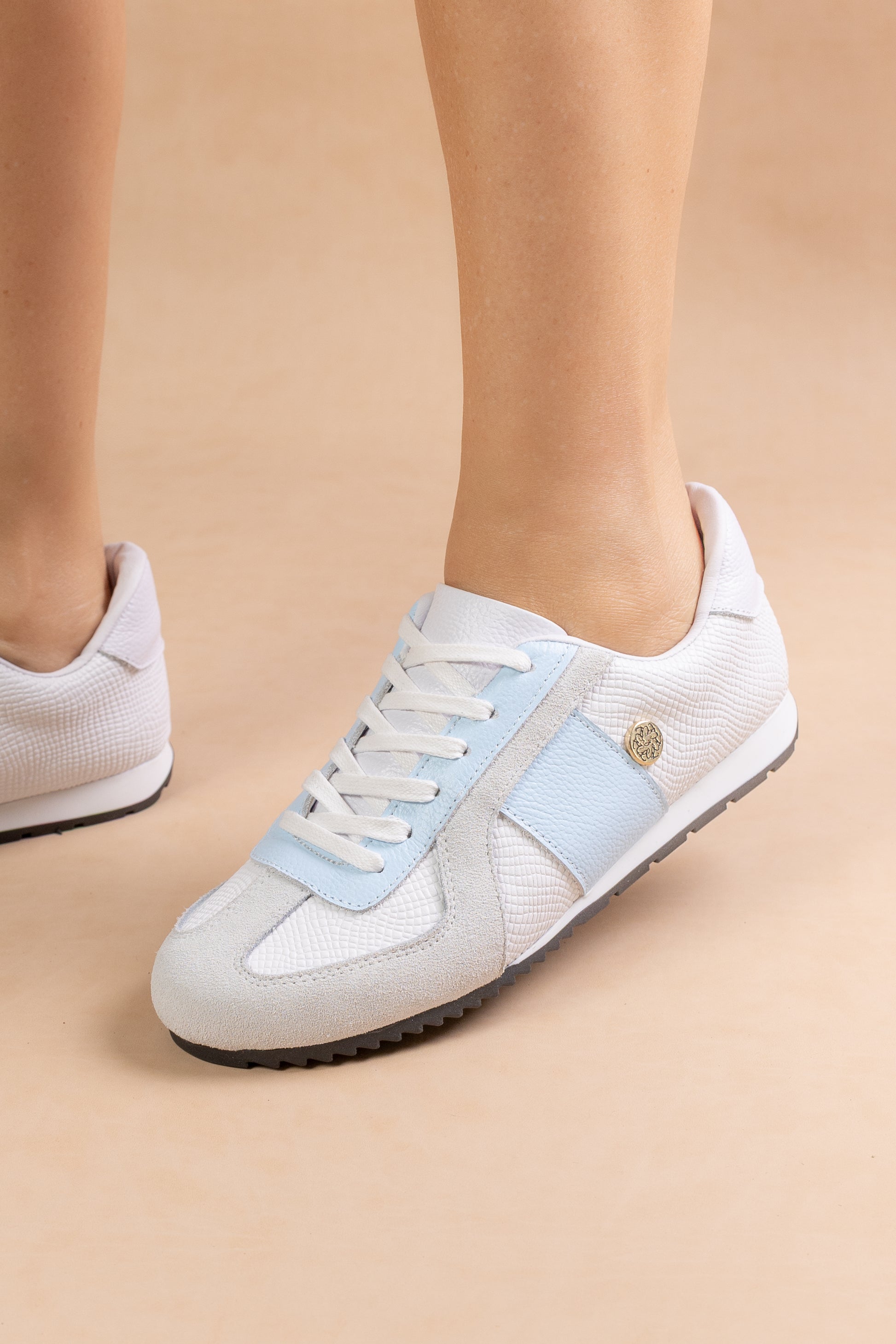 Este tenis es la definición de elegancia casual. Su diseño limpio y femenino se realza con delicados detalles en textura que aportan profundidad y sofisticación, mientras que los acabados en cuero de alta calidad reflejan un estilo cuidado y atemporal.