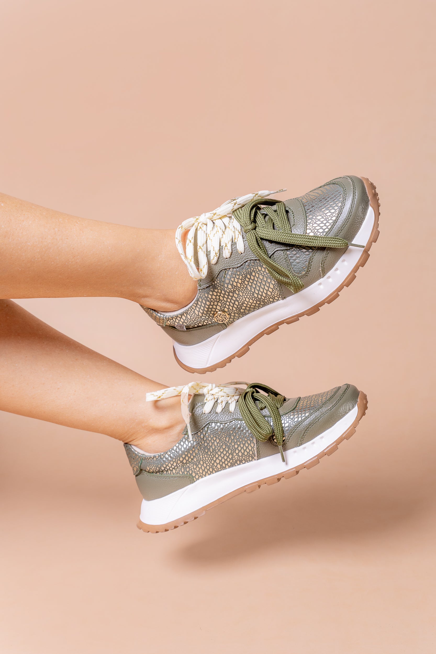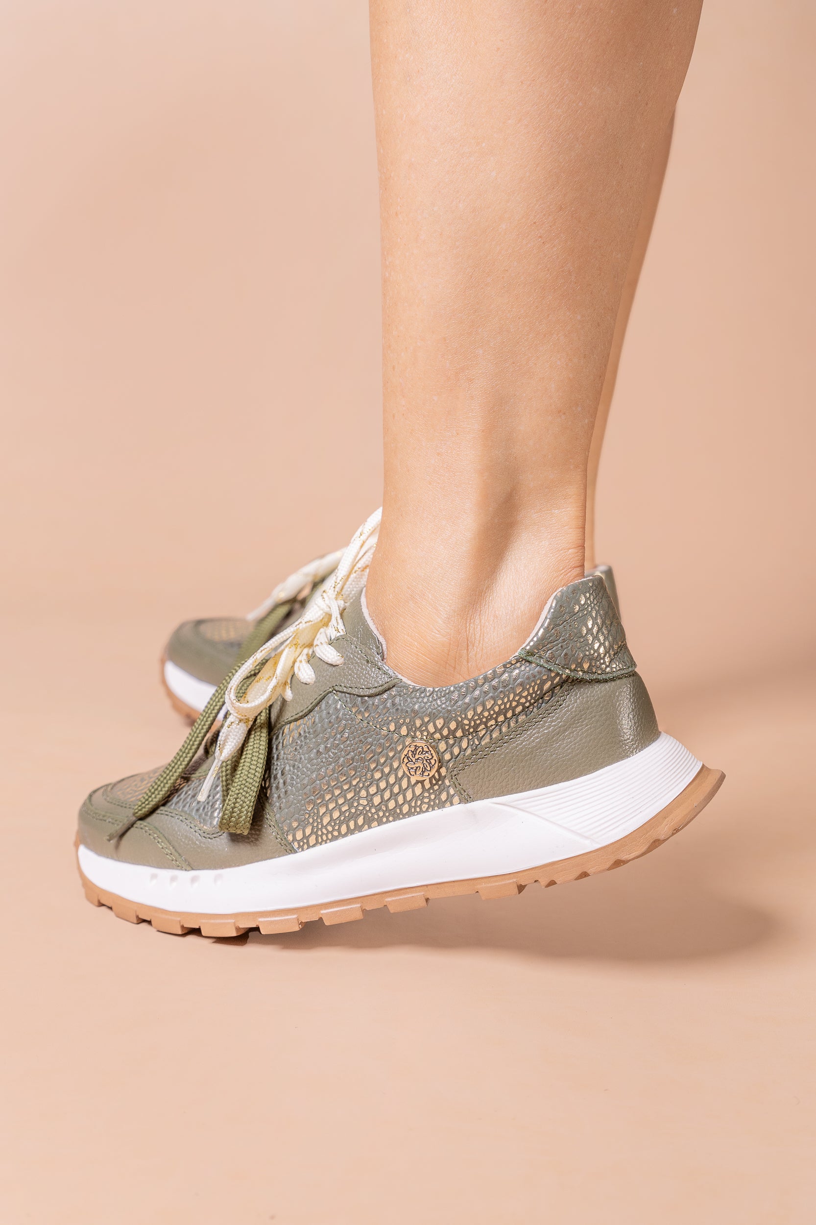 Tenis Lume - Cuero Verde Oliva- Carolina Laiton